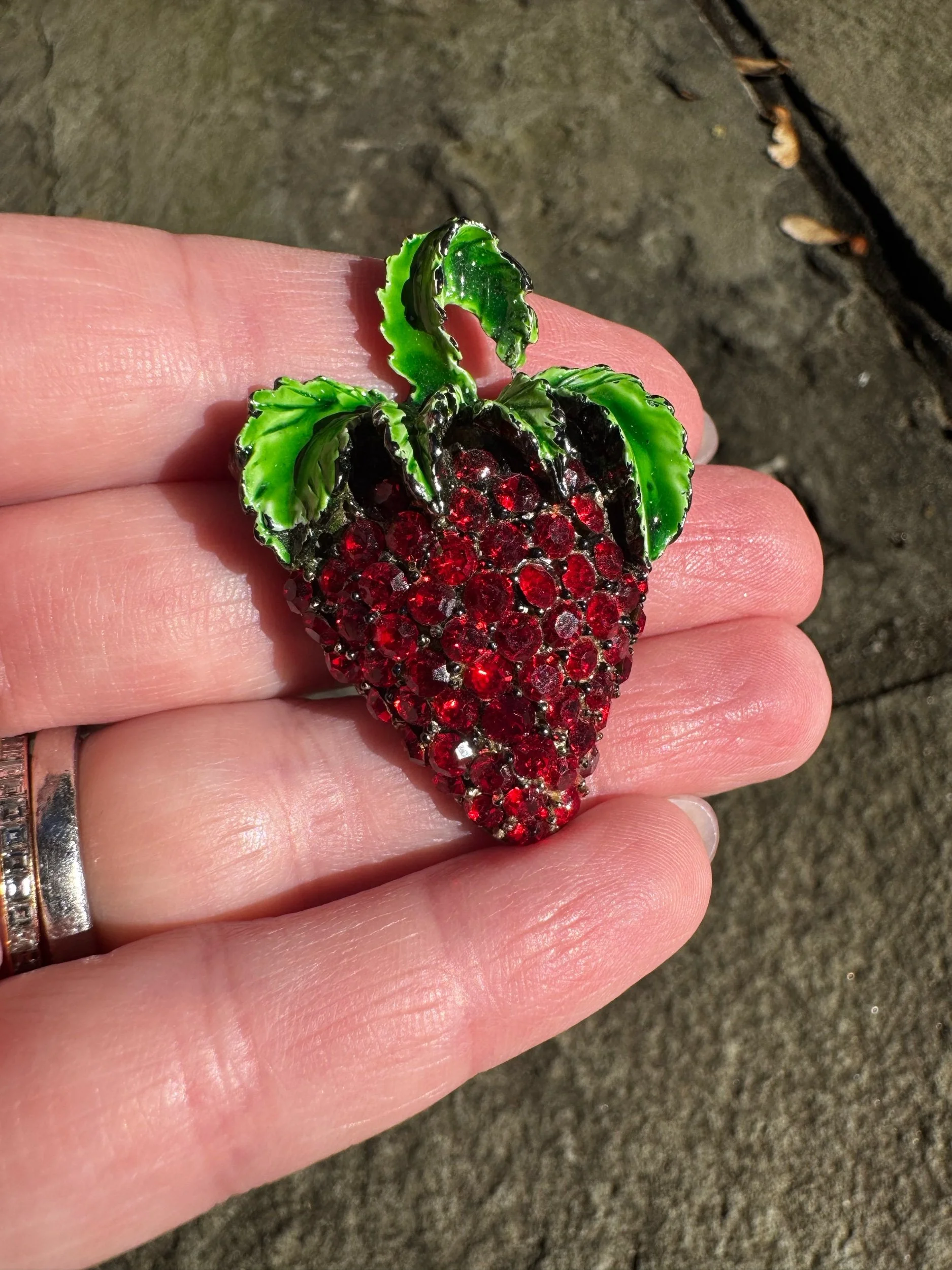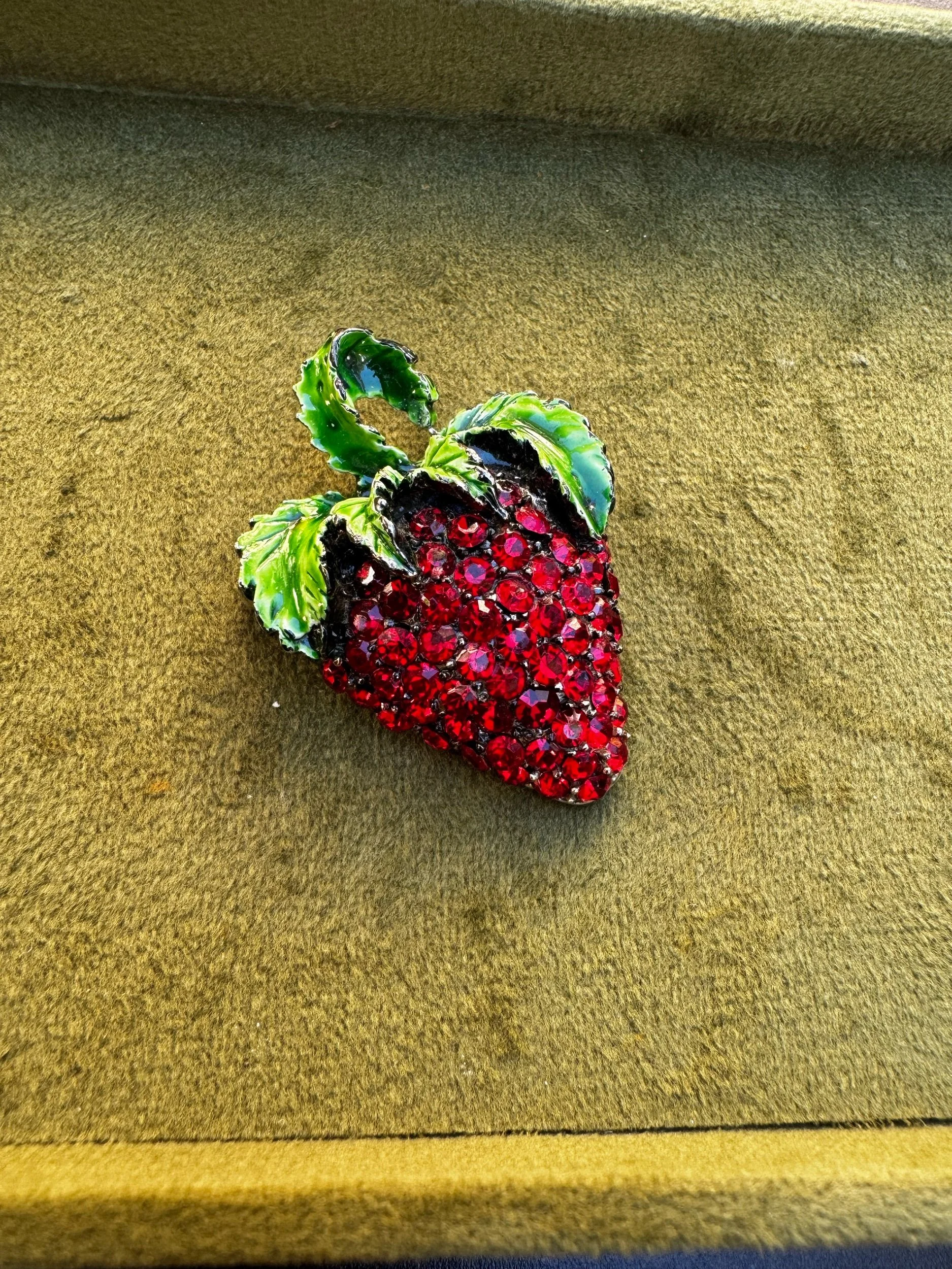 Strawberry Enamel and Rhinestone Brooch
