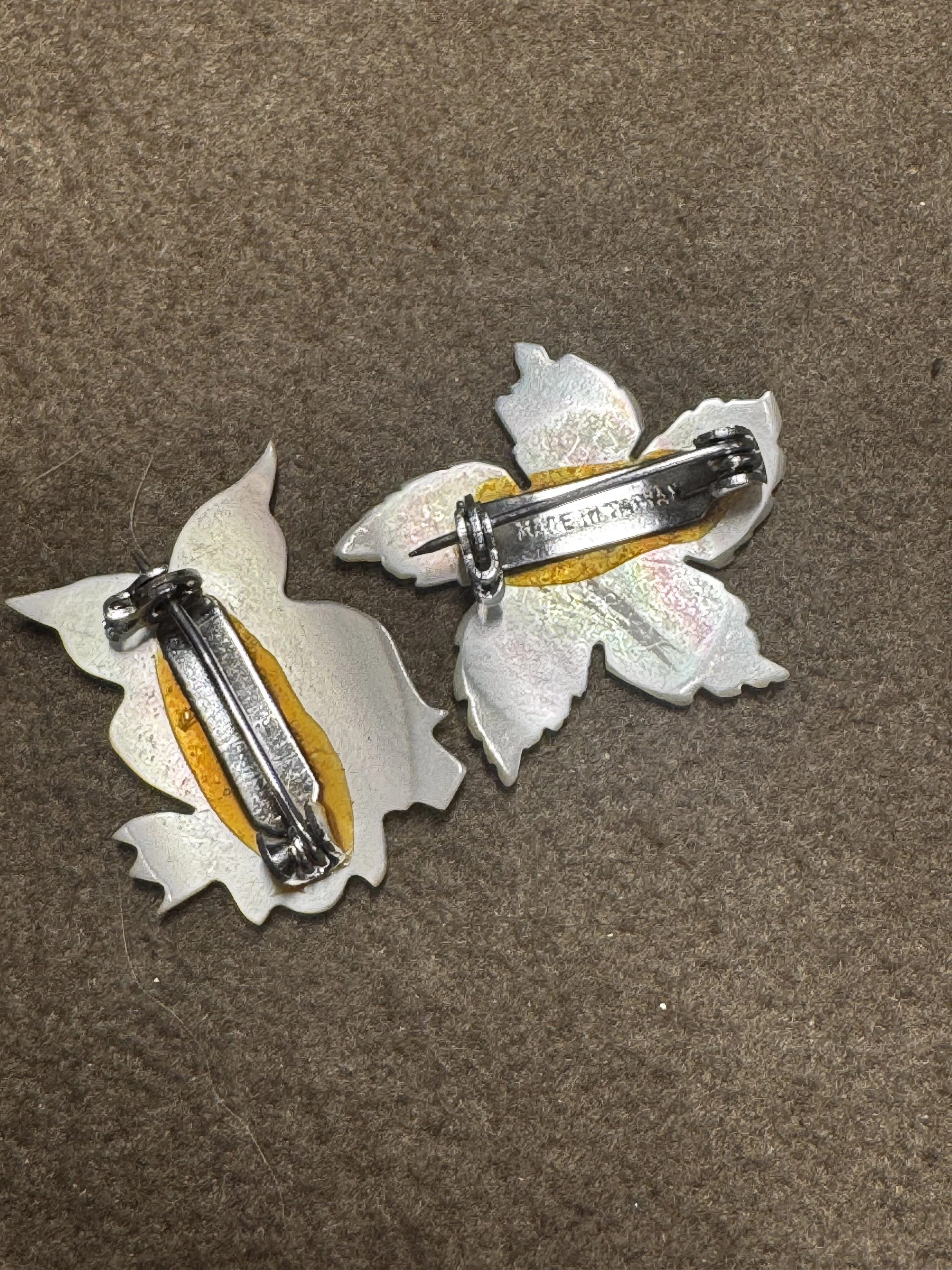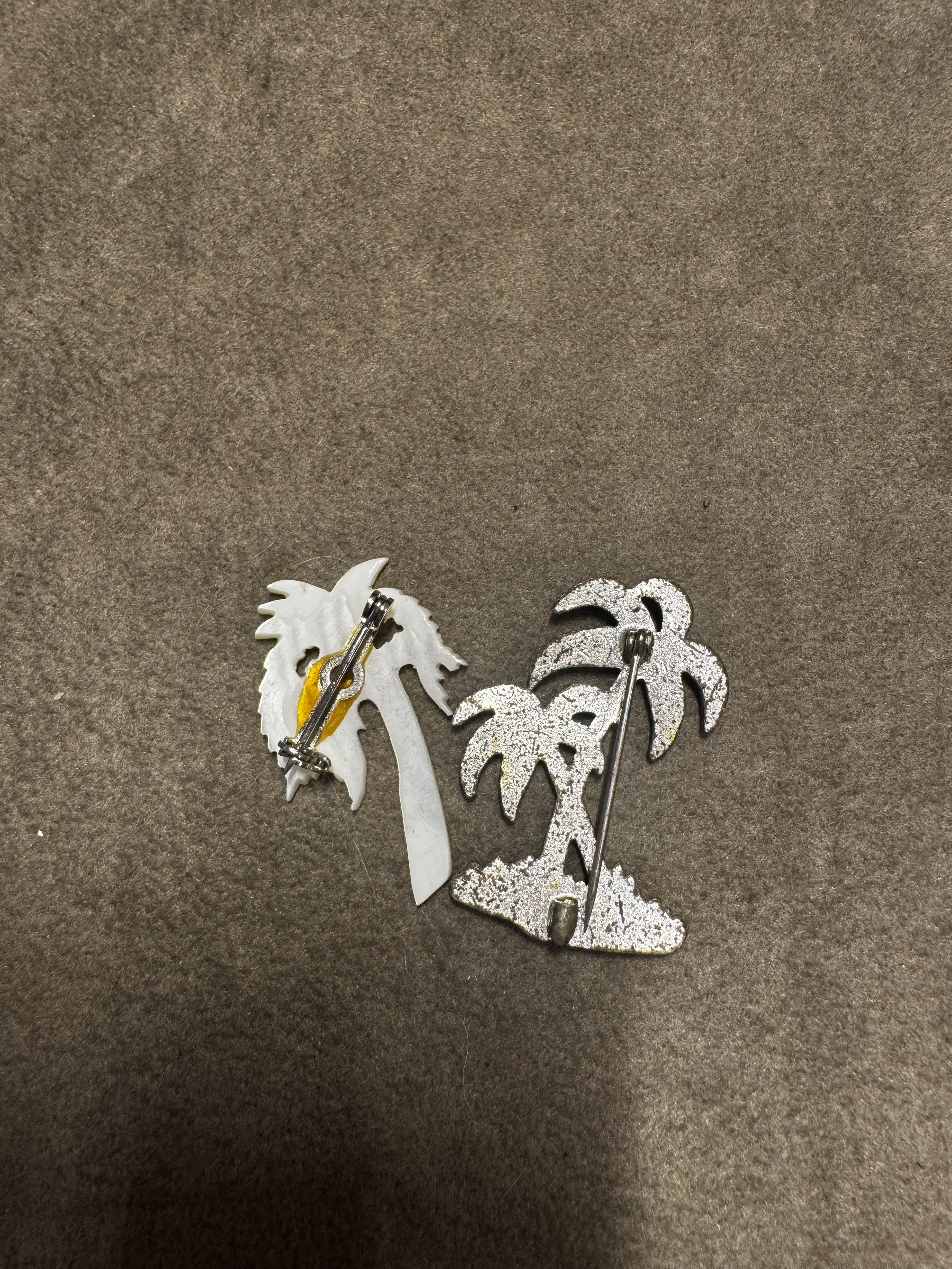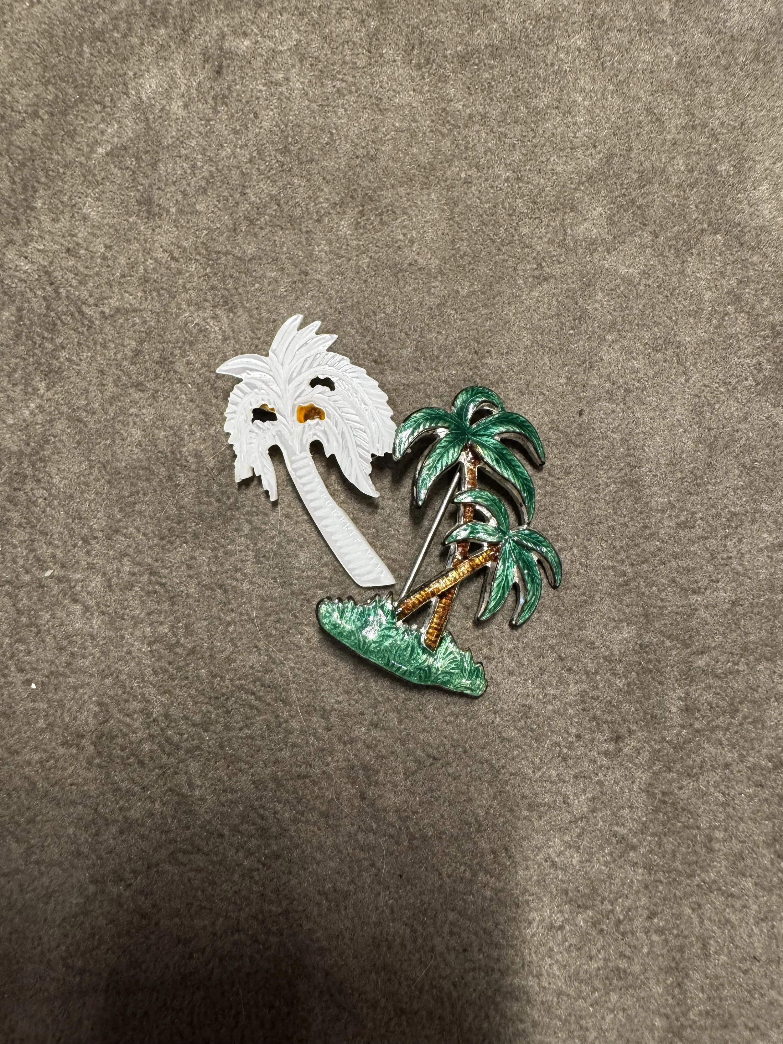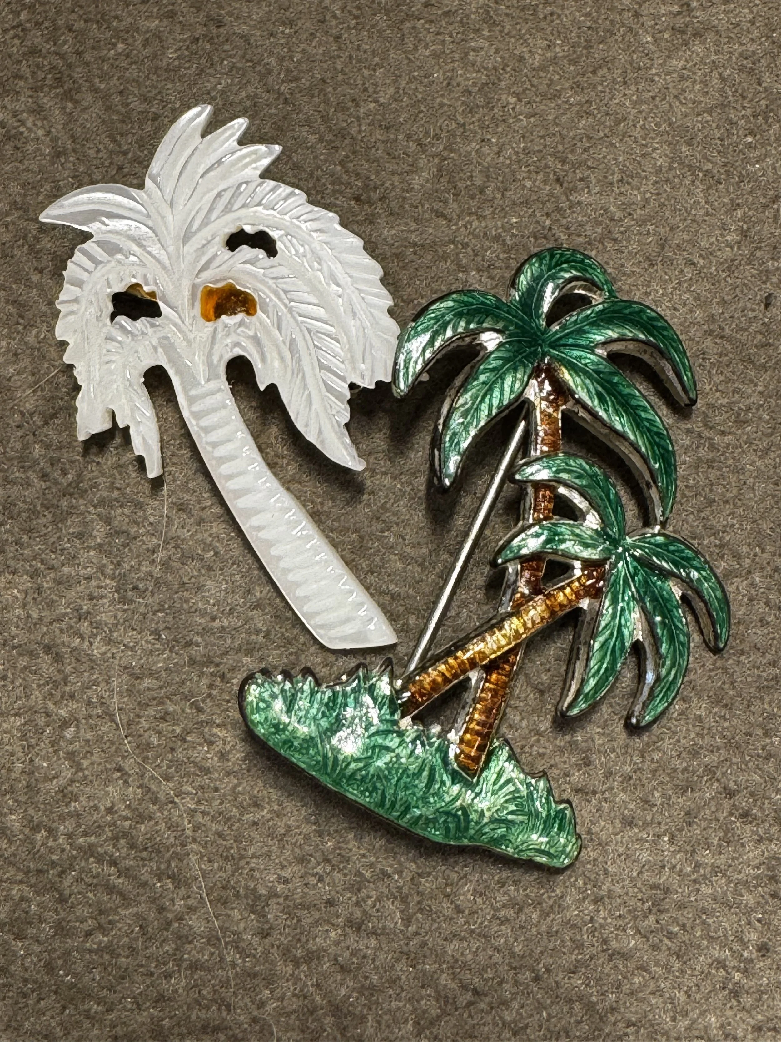 Lucite “stones” in a variety of shapes — sure to add a pop of beautiful color to any jacket or bag! It features a beautiful, cohesive blend of aqua, teal, deep sapphire blue, and turquoise. The stones interact with the light to display various shades of green and blue. This brooch has a dramatic, modern-vintage look. It is a fantastic accent piece for a lapel, scarf, or hat, perfect for adding a luxurious splash of jewel-toned color.